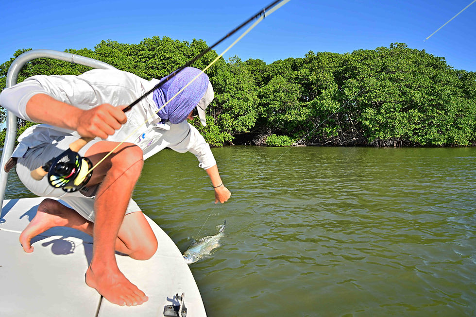 Our guides mentioned that we weren’t seeing a lot of rolling fish, but from my perspective, I was more than satisfied with the number of shots we had each day. Several fish were jumped daily. Steve Binnick had a good week, jumping fish up to forty pounds, and he was lucky enough to land a huge mangrove snapper. Bill and Donna Scott put the hurt on several good fish, including some snook. All in all, I saw more than enough to know I’ll be returning next February to host another group of friends.